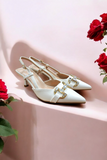 Décolleté a sandalo con fibbia gioiello in ecopelle tacco 6 cm