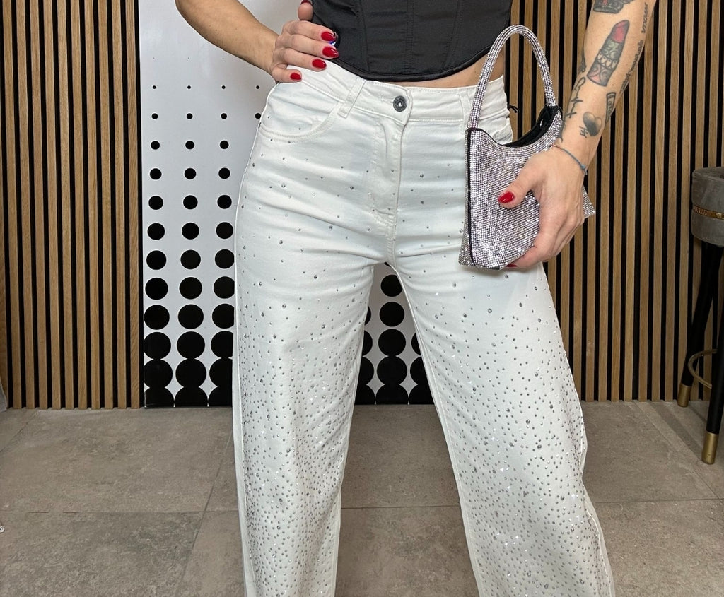 Jeans white strass
