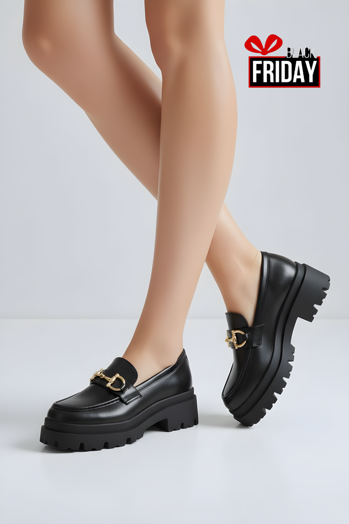 Mocassino in ecopelle con fibia in color oro