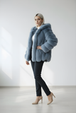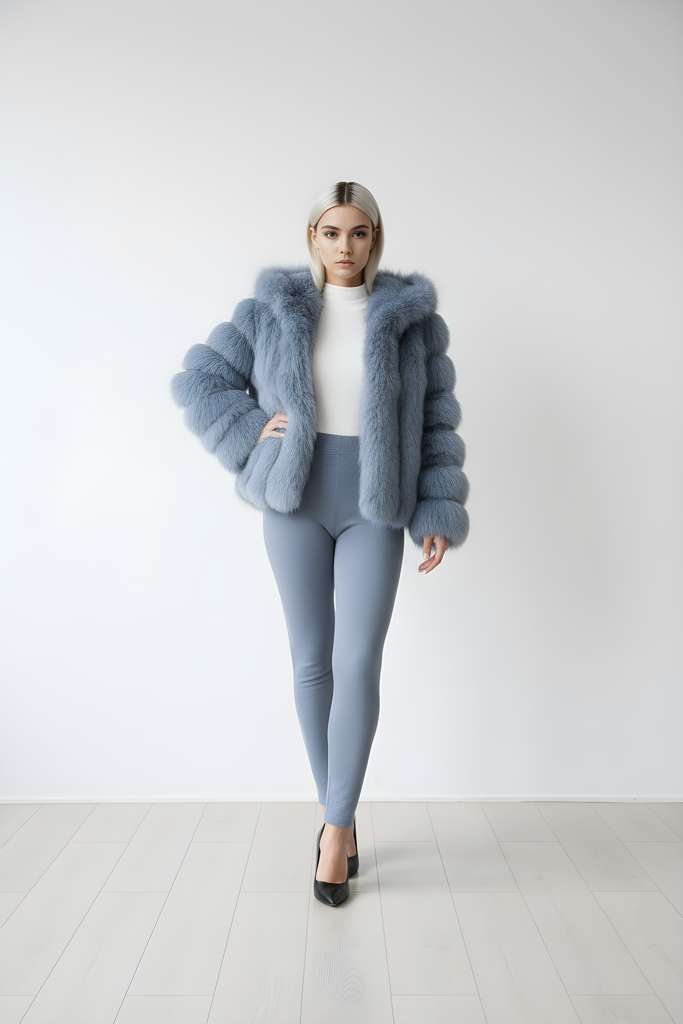 Eco pelliccia con inserti in ecopelle con cappuccio.