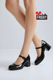 Scarpa in ecopelle lucida  punta rotonda con tacco largo alto cm 6.5 suola.interna in pelle