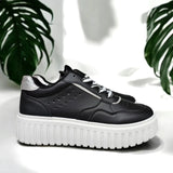 Snekers in tessuto e ecopelle con suola in gomma e rialzo di 6 cm