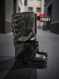 Stivale in ecopello con fondo in gomma risvolto e fibie
