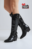 Stivale in ecopelle modello texano con dettaglio fibia cerniera laterale tacco cm 6.5